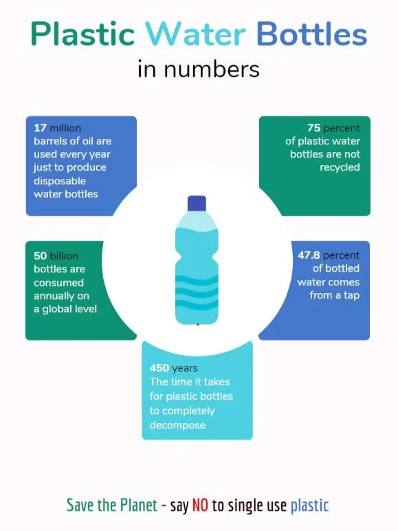 This is destroying our planet and we need to end our reliance on single use plastic. Many are discarded and end up polluting our rivers and seas. Globally nearly 15 billion plastic bottles are purchased daily about 1 million bottles per minute.